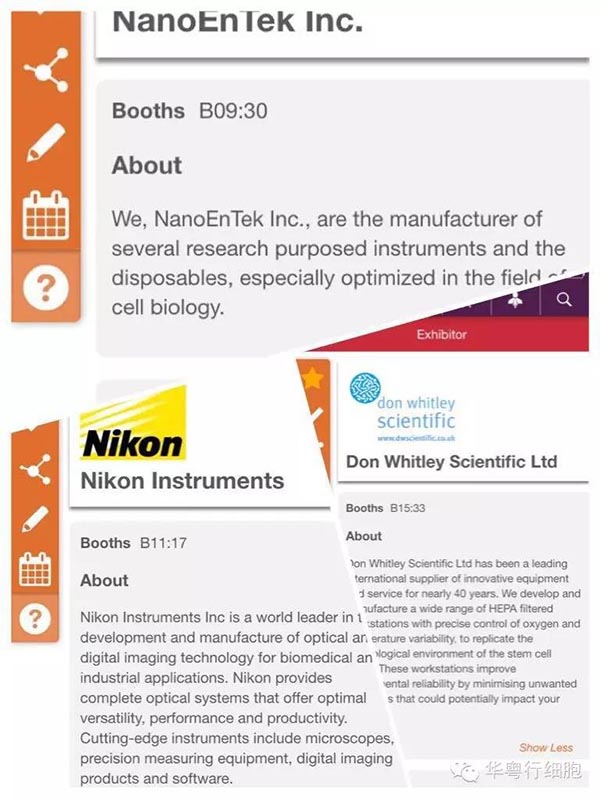 先看一下ISSCR會(huì)議APP上列出的部分廠家,一進(jìn)入就看到我們的廠家SONY、Biospherix、NEPA 、NanoEnTek